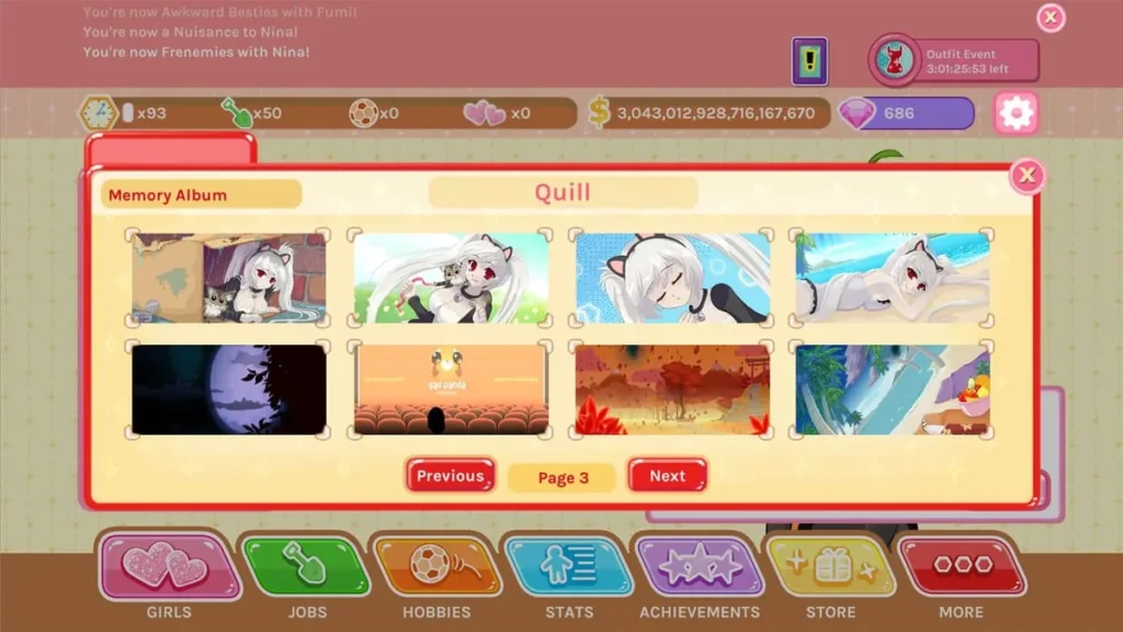 * Gameplay Boosts: Many characters, once you reach a certain level, will grant permanent bonuses like a percentage increase to all job income or a boost to hobby speed. This elegantly ties the dating sim aspect back into the clicker game mechanics, making your romantic efforts directly power up your entire game.